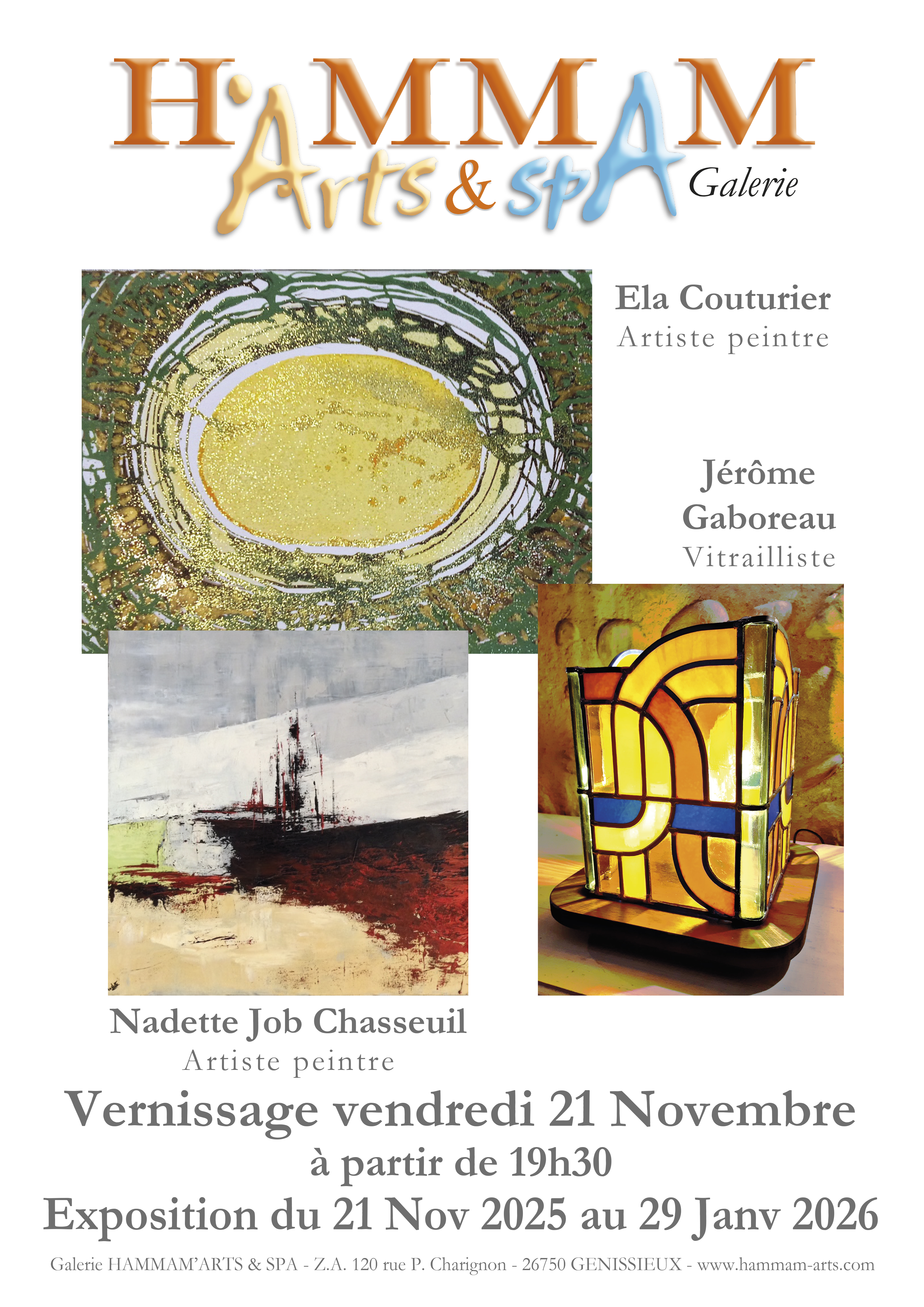 Vendredi 21 Novembre à partir de 19h30 à la Galerie du Centre HAMMAM ARTS & SPA.
